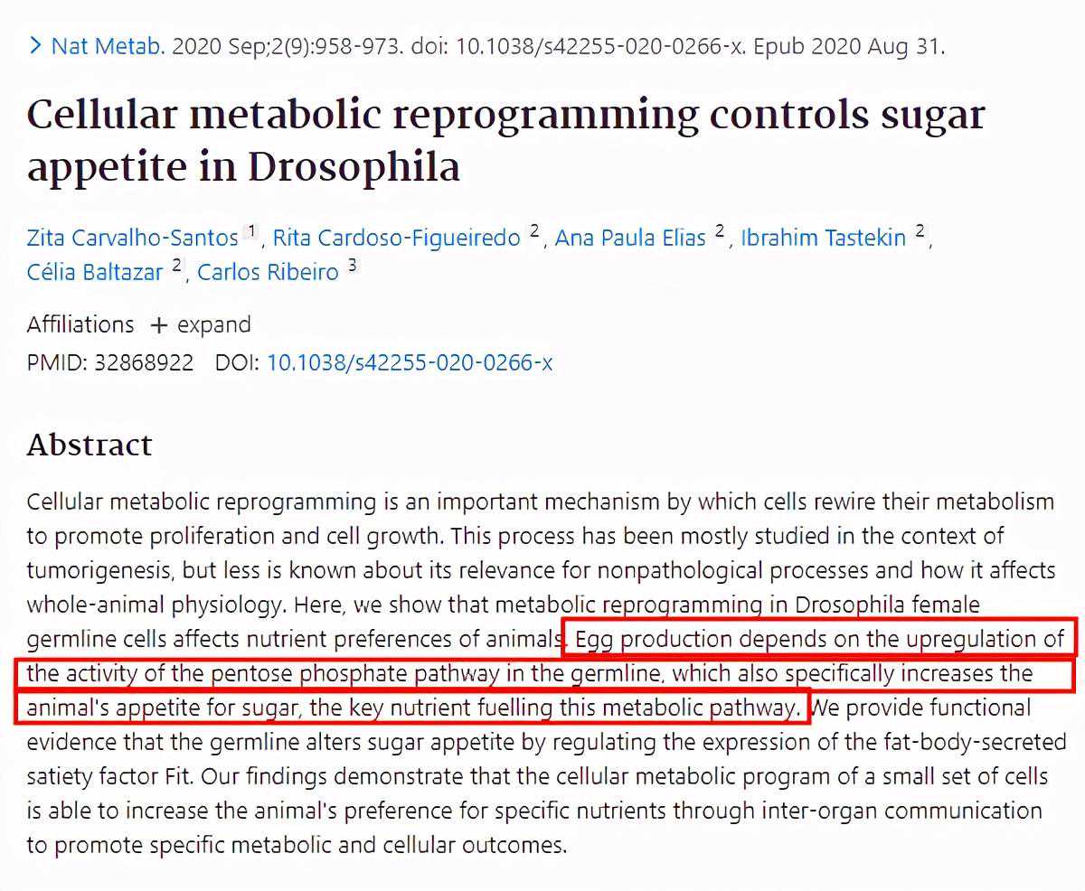根据《自然-代谢》刊载的研究显示,糖是果蝇生活的必需品,如果减少糖摄入,果蝇将无法产卵。所以为了摄取糖,果蝇会追逐各种含糖的物质,以及酵母菌。