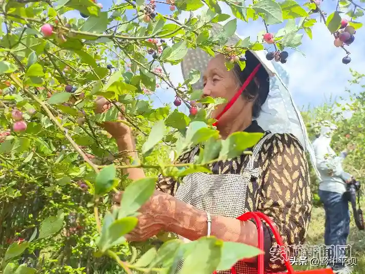 时下正是蓝莓采摘的旺季,在平坝区羊昌乡九龙村蓝莓种植基地里,一颗颗饱满的蓝莓如同璀璨的宝石点缀在绿意盎然的果园中,工人们正忙着摘果、选果,一派忙碌的丰收景象。