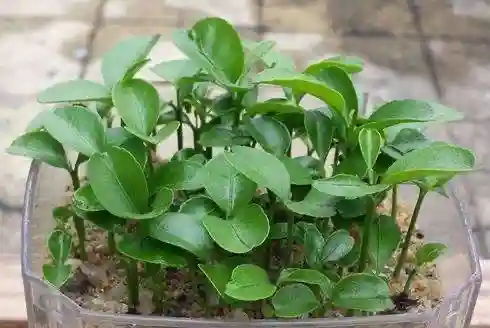 绿油油的叶子看起来赏心悦目的,非常养眼,它还能修剪成漂亮姿态优美的,苍劲有力的盆景呢。为了让它长得茂盛,我们要换大盆养,换上更加肥沃疏松的土壤,它就会开花结果。春天撒点水果种子,10天长成绿油油小盆景,还可能会结出好多果!