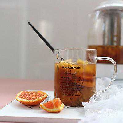 9、做好的水果茶稍微放凉之后,加入百香果,混合均匀即可开喝