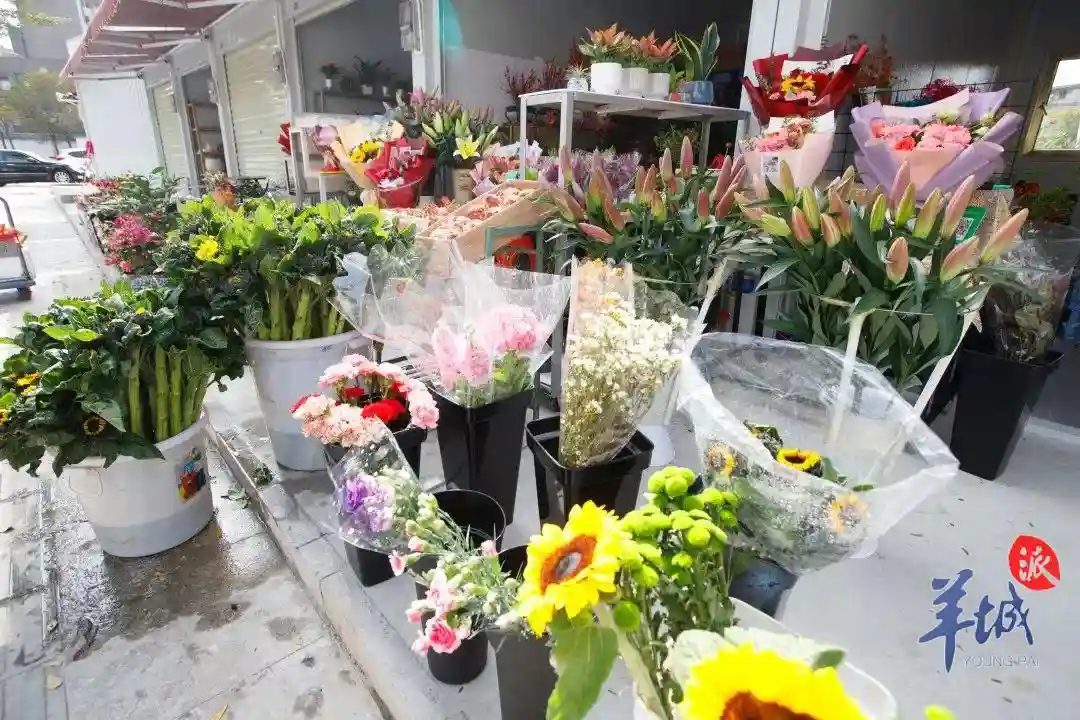 一大早,各个商铺门口早已摆满鲜花供顾客选购,只见蝴蝶兰、水仙花、年桔、绣球花、百合等品种的花卉琳琅满目,店主时而帮顾客推荐心仪的年花,时而忙碌着卸货,清点鲜花货量。
