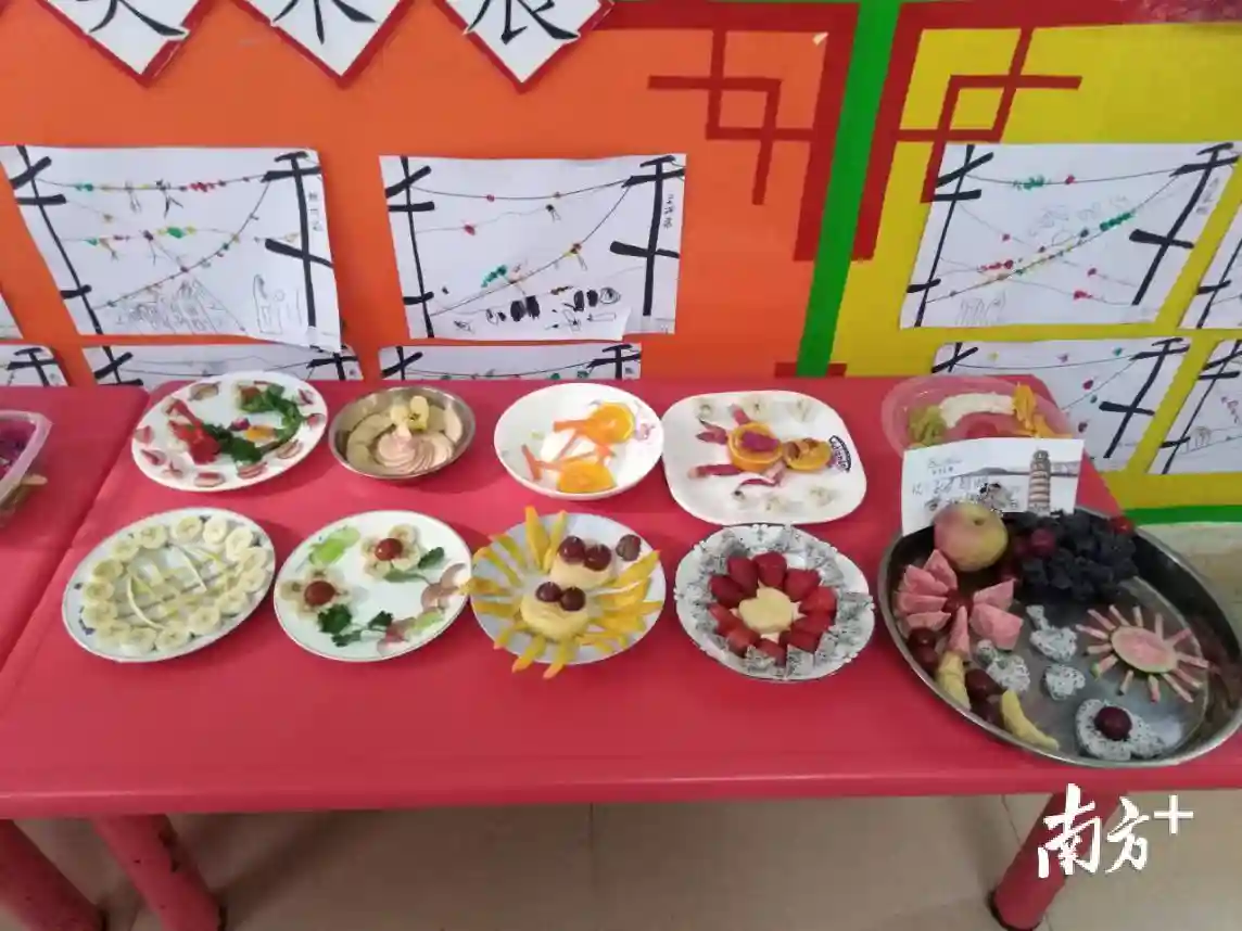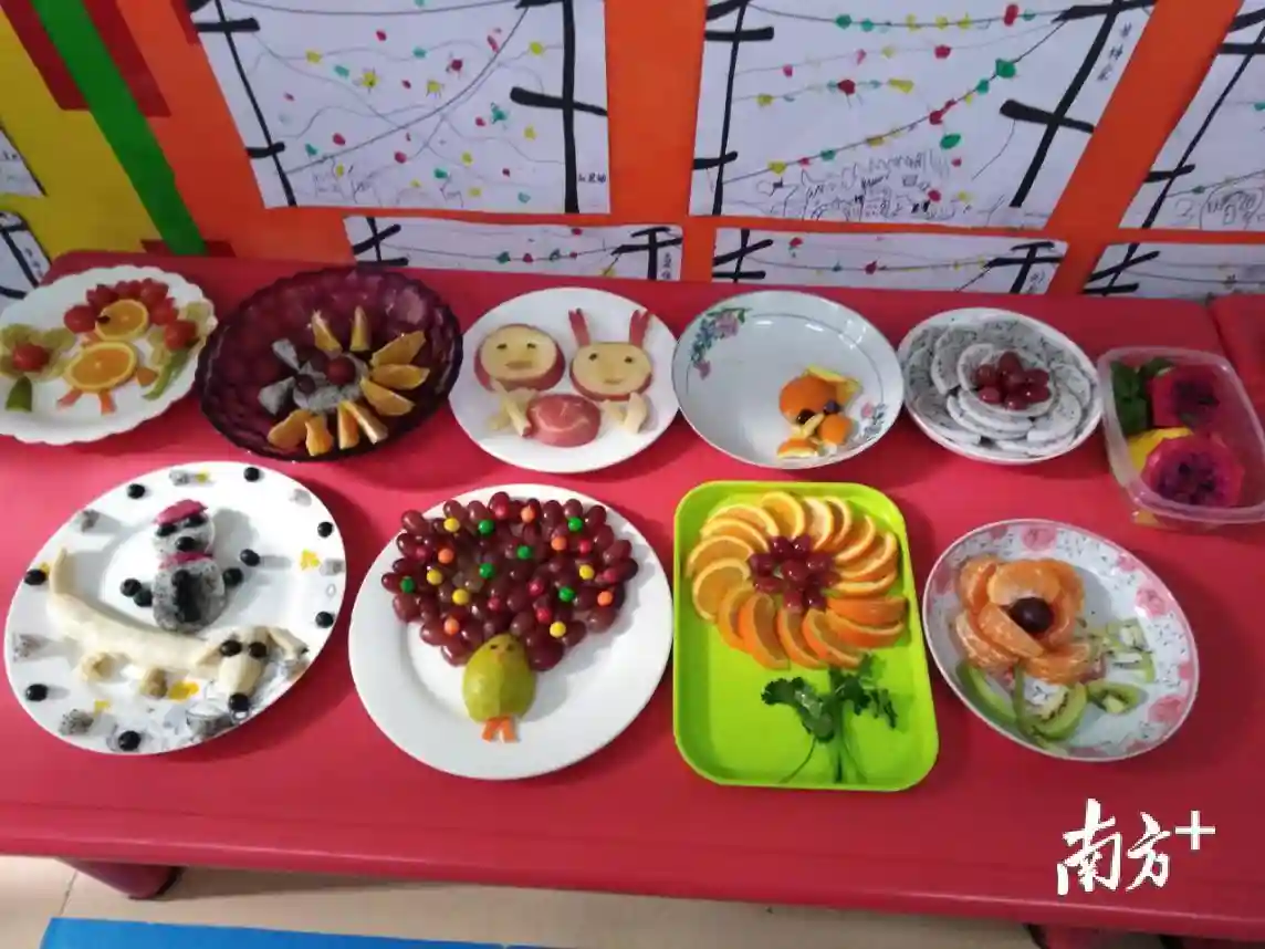 随后,孩子与家长们一起动手,共同制作水果拼盘,葡萄、香蕉、西瓜、苹果、橙子、火龙果,甚至连香菜都出动了。瞧!不一会的功夫,各类水果在孩子们的创意与家长们的手艺之下转眼变成了椰子树、机器人、孔雀……现场气氛融洽热烈,孩子与家长们的欢声笑语洋溢在园区。