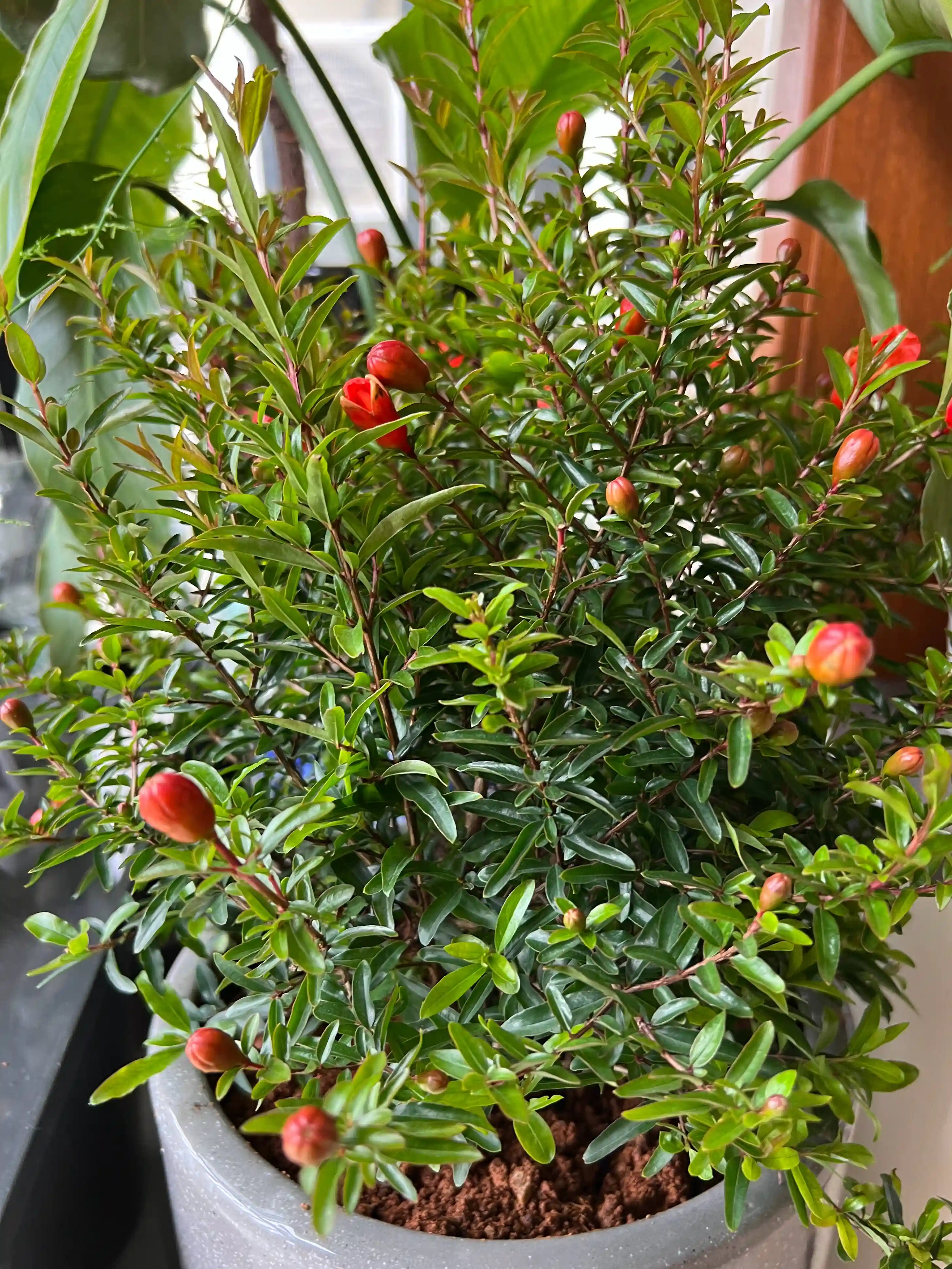 盆栽的石榴,除了盆土要肥沃,还需要在春秋的时候,多给有机肥,盆底下一些底肥,同时,要多晒太阳,冬季可以修剪一次枝条,并且下一些肥料,春季保持肥水充足,它会发芽更快,开花更多,果子更多更大一些。