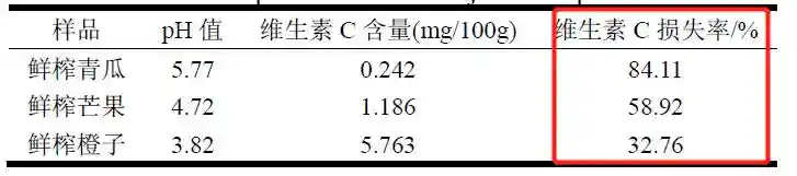 研究显示,芒果、橙子被榨成汁后,维生素C损失率分别高达58.92%和32.76%。