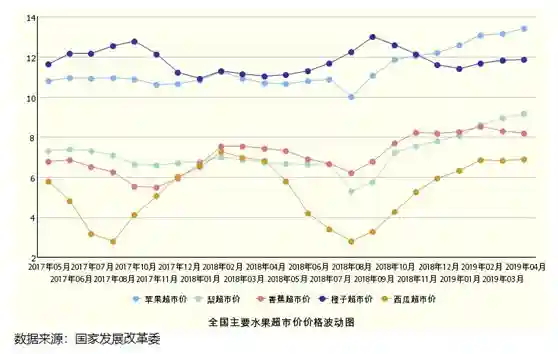 来自国家发改委数据也一定程度进行了验证梅新育的观点。根据国家发改委数据,全国主要水果超市价涨幅远远高于集市价涨幅。