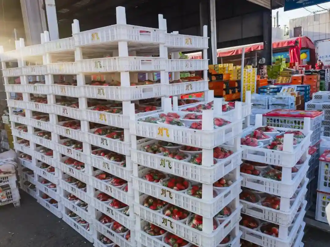 干燥寒冷的冬季,需要一颗酸甜可口的草莓治愈。踏入徐州农副产品中心批发市场,水果摊位上红彤彤的草莓散发着诱人的光泽,瞬间吸引过往顾客的目光。