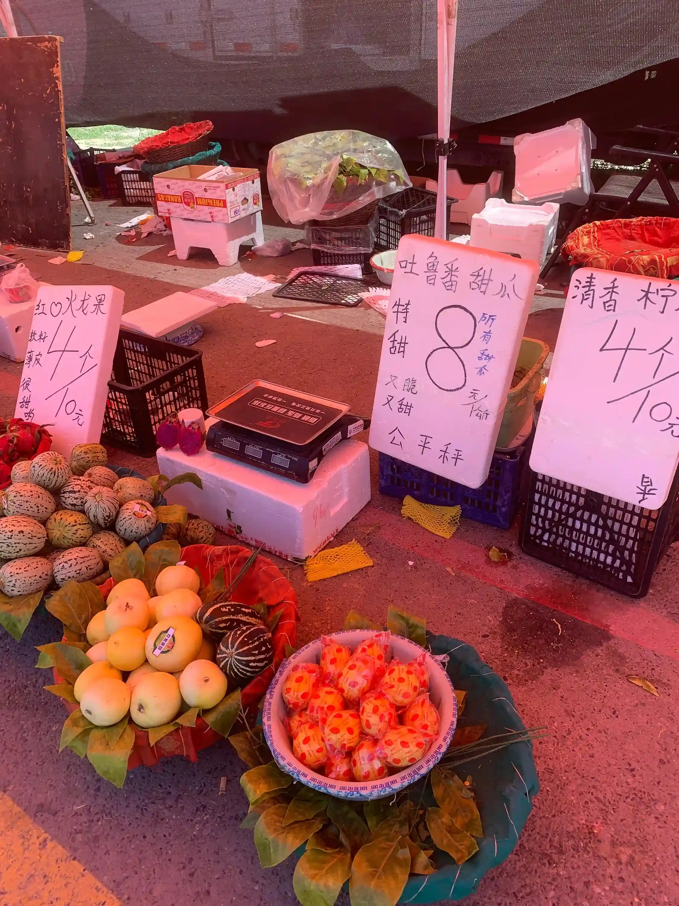 看到了吐鲁番产的小梨瓜,小梨瓜还是脆甜,比较好吃,北疆的梨瓜也快上市了。