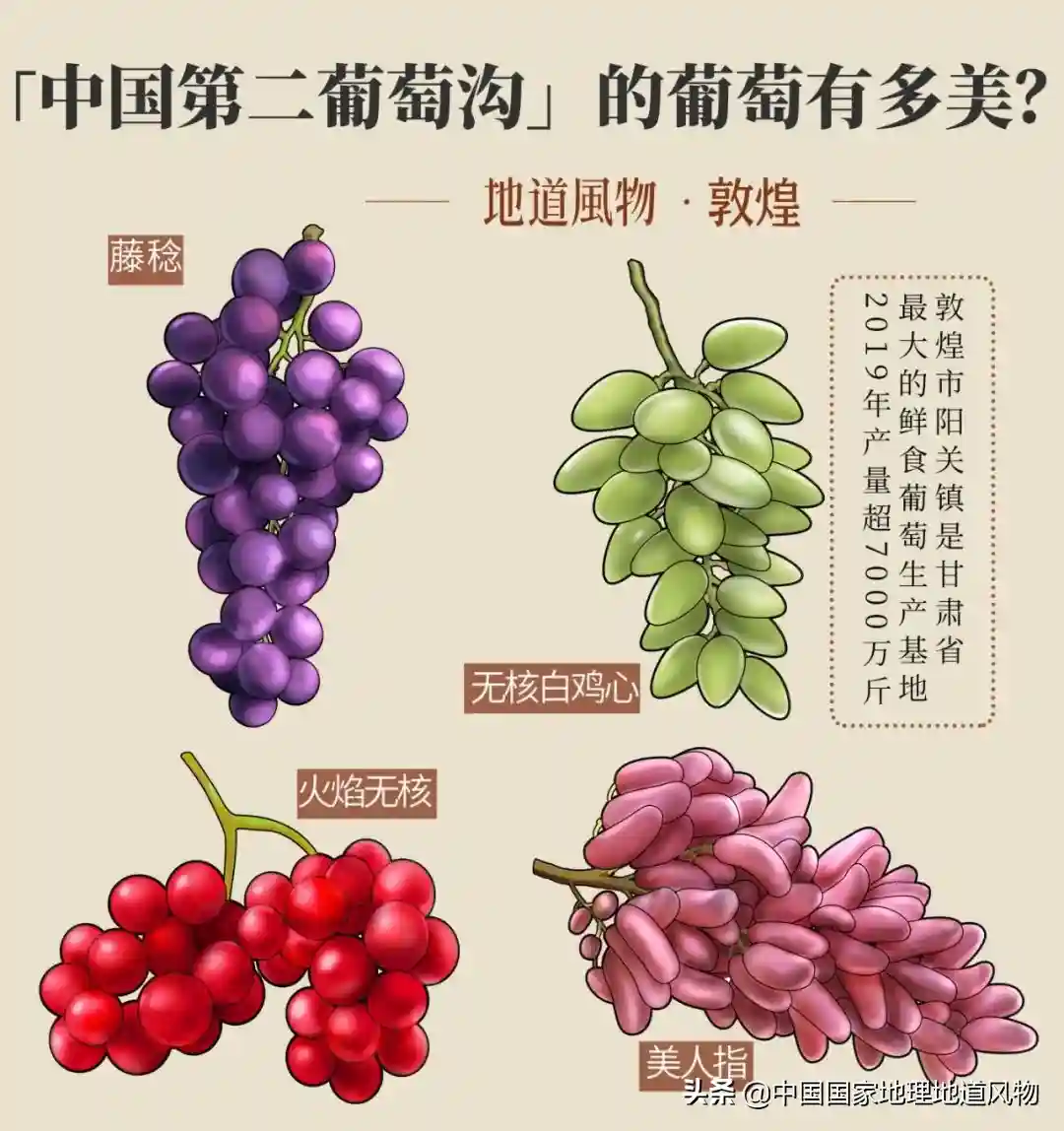 位于葡萄栽培“黄金带”上的敦煌,这里的葡萄唐代人早有所尝,如今不仅甜到全国,更是出口到国外。丰收的葡萄,借助干旱的气候脱水成葡萄干,每一颗都如被蜜蜂“蜇”了一般甜。