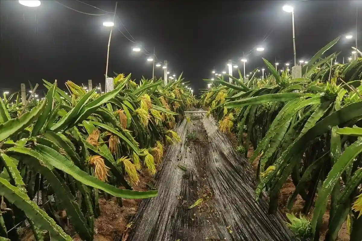 这其实就是在用光照刺激火龙果的生长,提高火龙果的产量和结果速度。