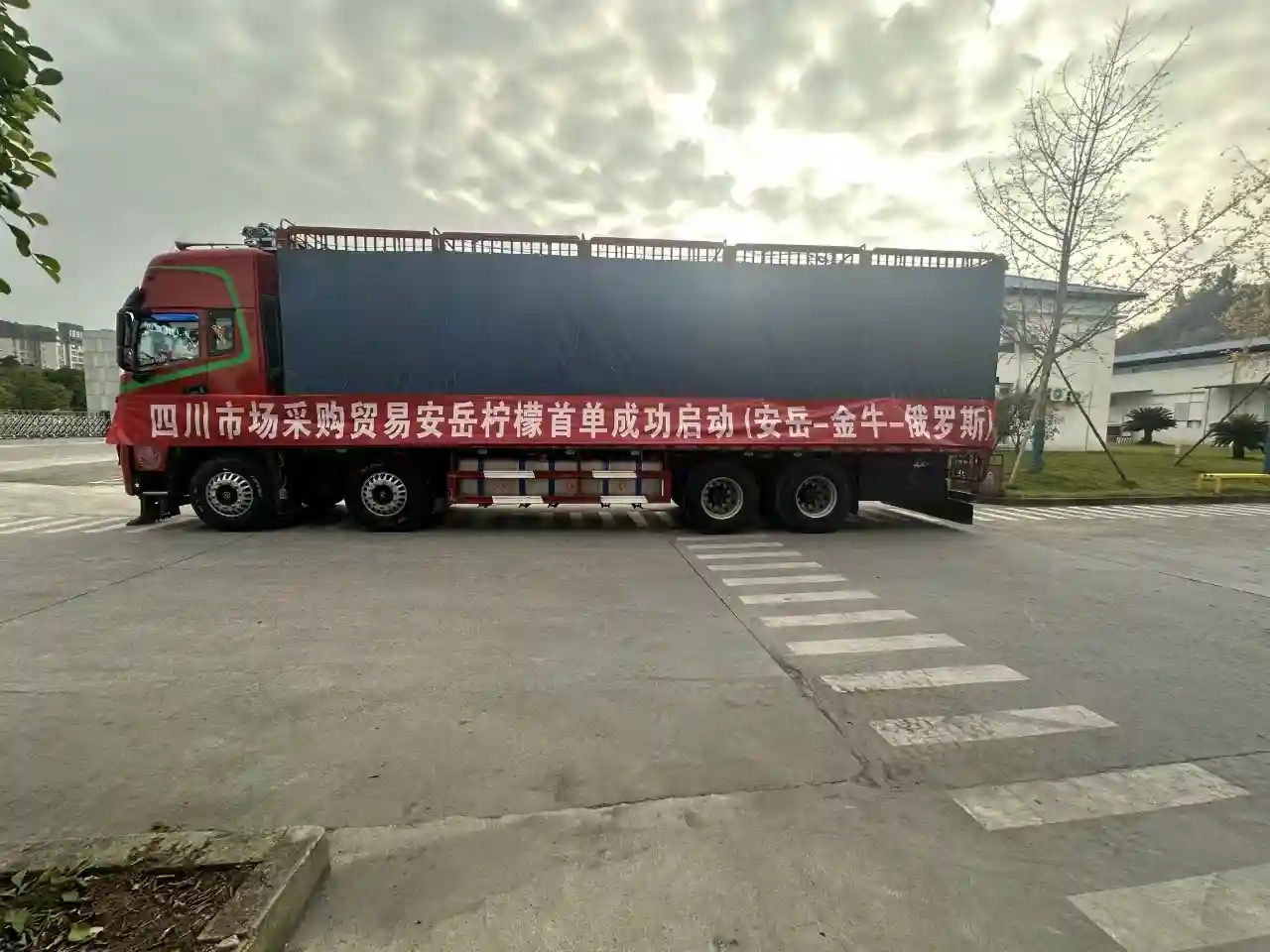 12月5日,在商务部驻成都特派员办事处、商务厅、省同城办、成都海关及成都市商务局等省市部门的支持和指导下,金牛区市场采购贸易服务中心联动青白江海关、内江海关、资阳市商务局等部门,搭建起“金牛市场采购+资阳产业带”融合发展新平台,从金牛组货、安岳采购的21吨水果-柠檬鲜果,首次搭上经新疆霍尔果斯口岸出关的货运汽车驶向俄罗斯,全程运行约8000公里,预计10天后抵达。