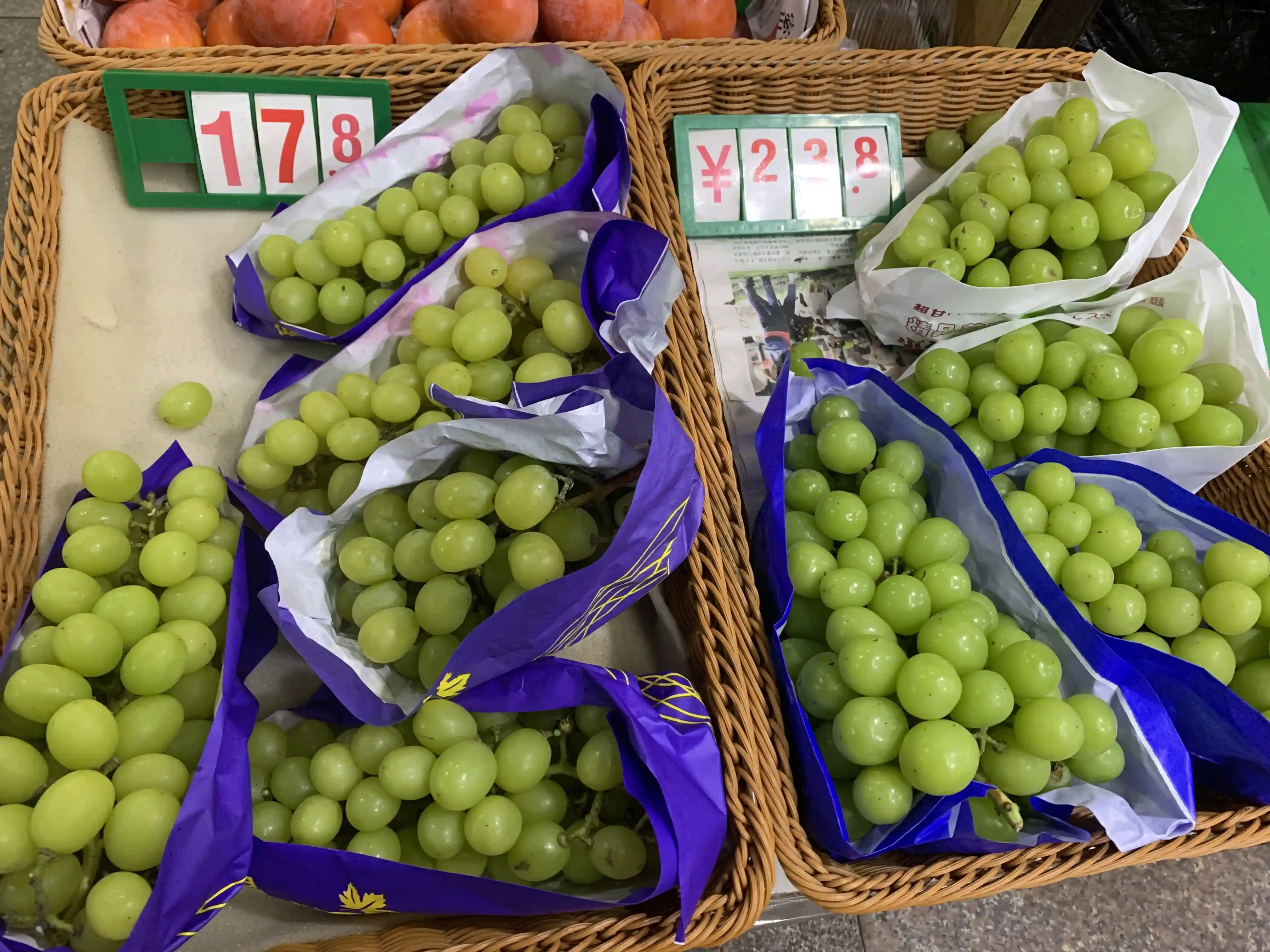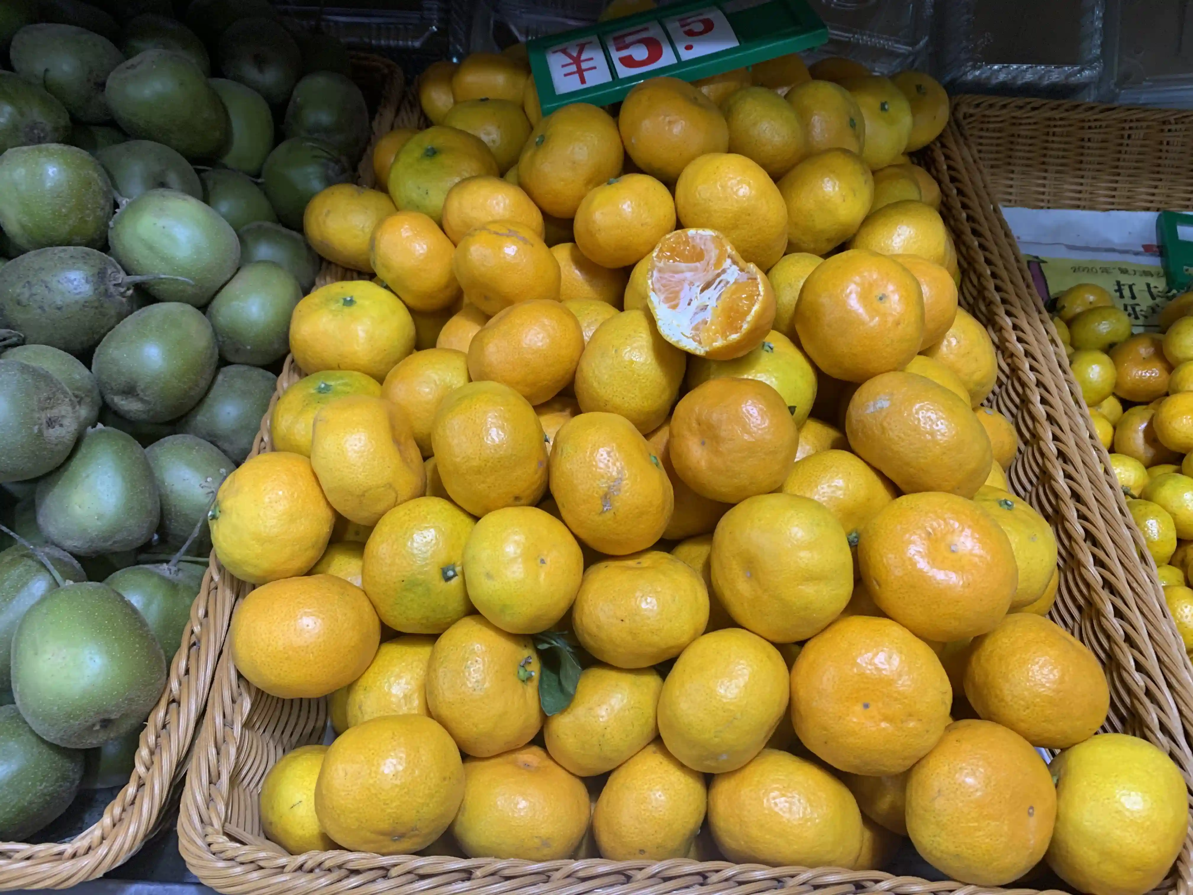 店主刘女士介绍说,现在店里的梨、柚子、还有“阳光玫瑰”品种的葡萄,卖得比较好。其中,“阳光玫瑰”葡萄即将下市。当前,店里桔子大量到货,有贡桔、砂糖桔和蜜桔等品种,来自江西、江苏、浙江等地区,每斤价位在3.5元到6.5元不等。