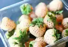 菠萝莓,一个草莓的品种,属多年生草本植物,外形酷似草莓,果肉呈白色,外面覆盖着红色斑点,与草莓的基因构成相同。尝起来味道与菠萝出奇的相似,故称为菠萝莓。这种水果外形像草莓,味道像菠萝,又名白草莓。