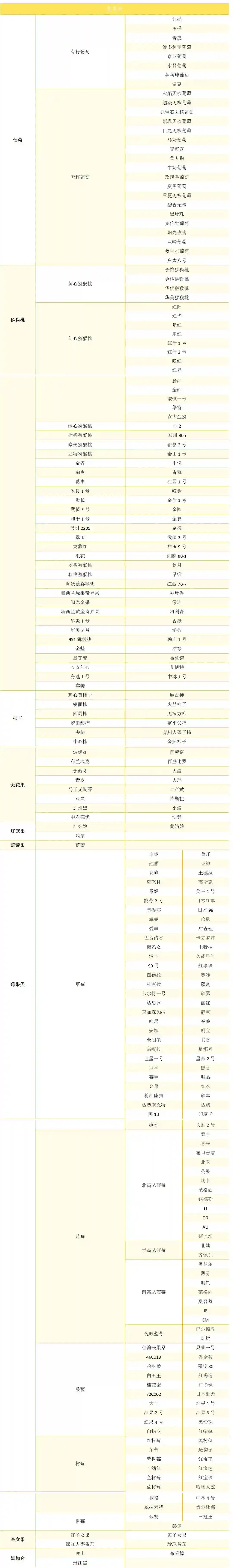 图表2:中国浆果类、仁果、核果类、柑橘类、瓜果类水果以及热带水果主要品种