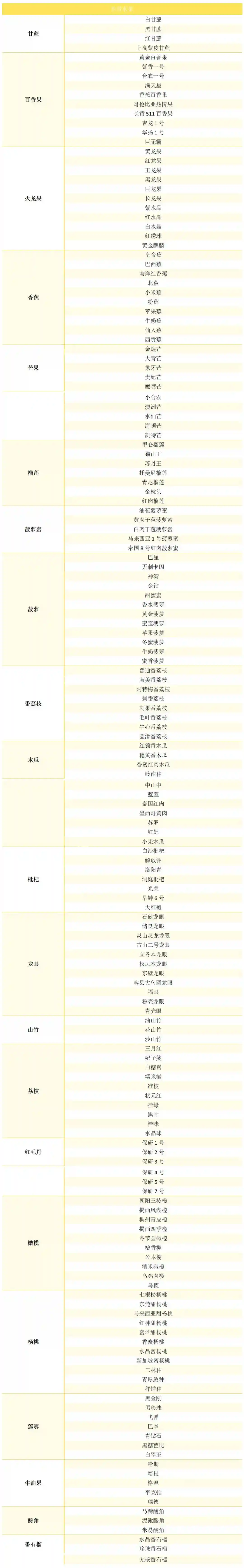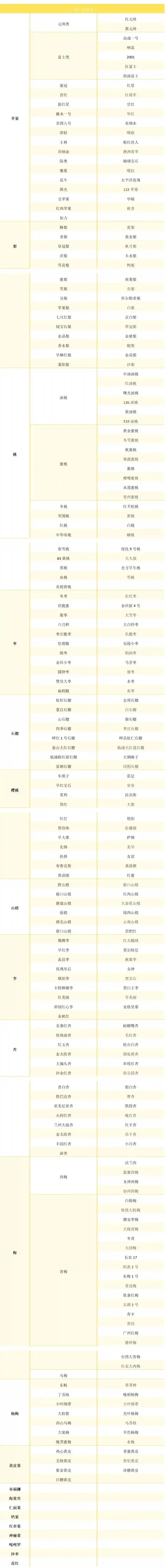有些水果同属于多个分类,如杨桃可属于浆果类和仁果类,枇杷可属于核果类和仁果类。本文基于农小蜂在运营过程中积累的浆果类、仁果、核果类、柑橘类、瓜果类水果主要品种以及热带水果主要品种进行分享,为从事水果产业链上下游科研、育种、种植、加工、仓储、包装、保鲜、运输、销售等活动的主体及社会化服务机构提供参考。