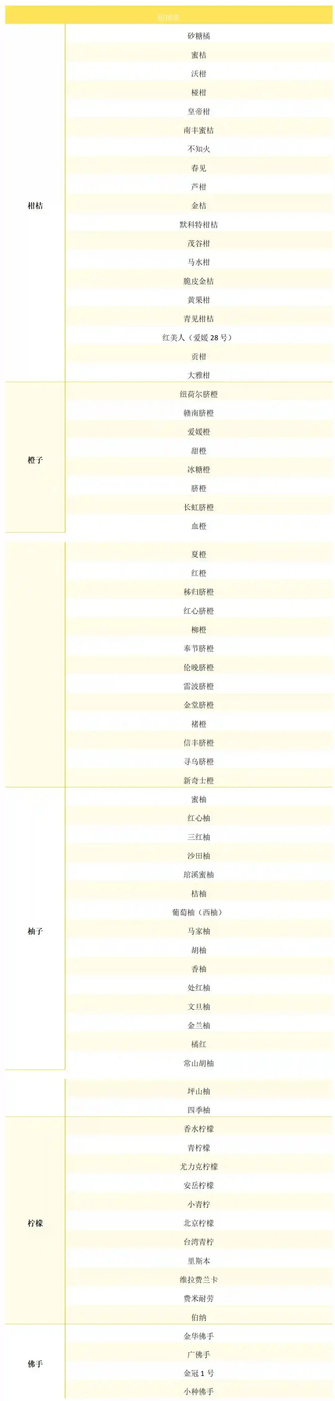 柑橘类指外皮含油泡,内果皮形成果瓣的柑橘属一大类水果,常见的有:各种柑桔、橙子、柚子、柠檬、佛手等。