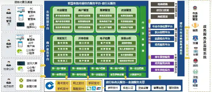 水果批发市场作为流通的主渠道与主平台,不单单是建设一个交易区就算是完事了,还需要辅以更多的配套功能,如电子结算化、大数据中心、仓储加工、冷链配送、装卸服务、果品检测检疫、进出口贸易结算、代理报检报关、保理、保险、短期融资等各项服务,让商户们真正实现负责“买与卖”功能,其它有平台统一解决,着力开拓市场与做好服务。