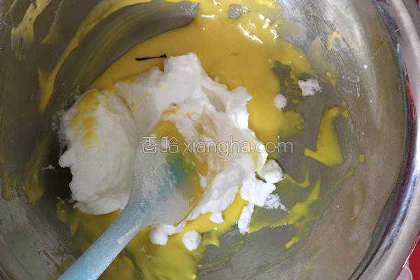 7、再将搅拌好的加进剩下的蛋清中,搅拌均匀