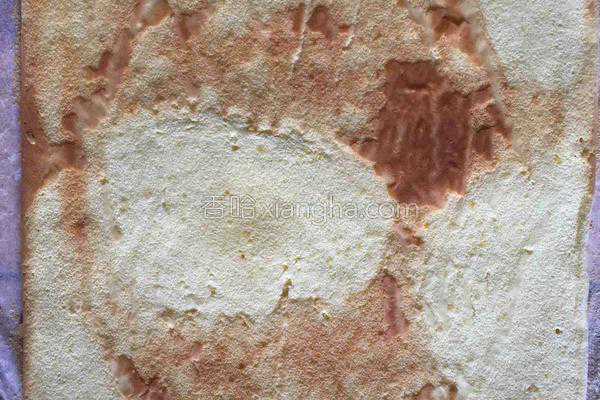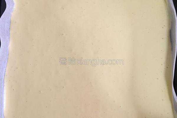8、将搅拌好的糊倒进烤盘里,整平
