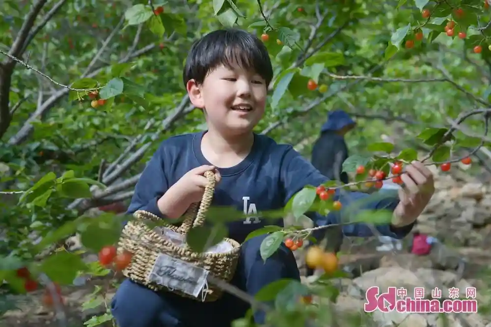 初夏时节,山东省青岛市城阳区惜福镇街道各村的樱桃园进入成熟期,晶莹剔透的红樱桃吸引了众多游客前来尝鲜体验。近年来,当地积极鼓励村民发展特色果木经济,樱桃种植面积已达3000余亩,计20万余株,通过采摘旅游、农家宴等多种形式增加农民收入。