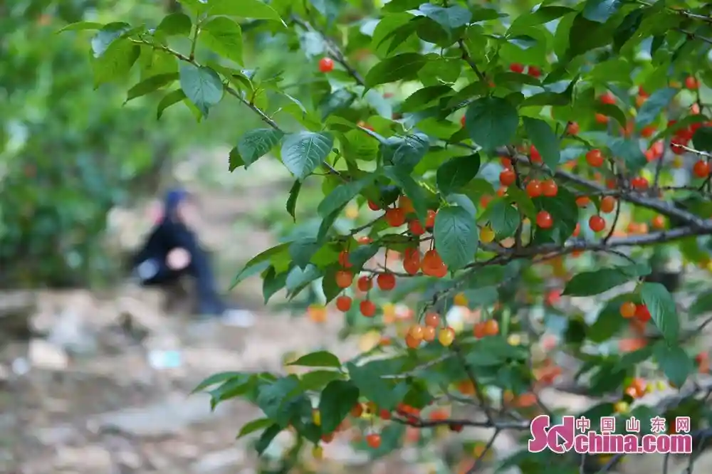 在青岛市城阳区惜福镇街道棉花村,樱桃树硕果累累挂满枝头。