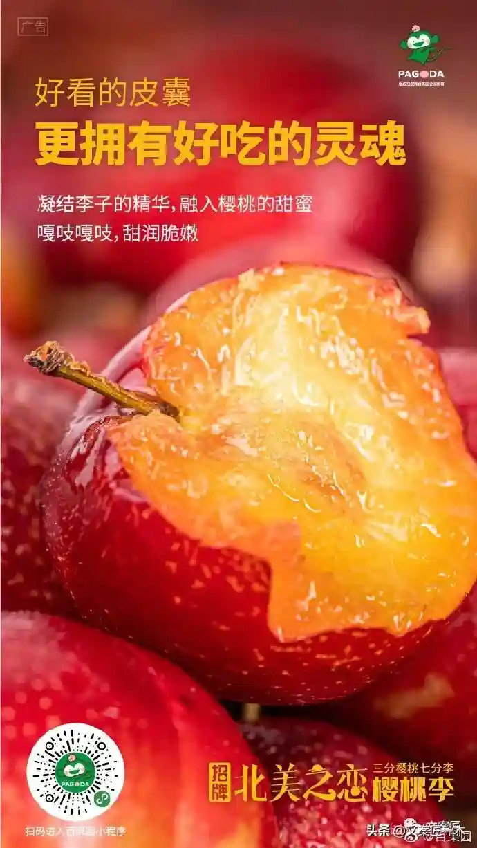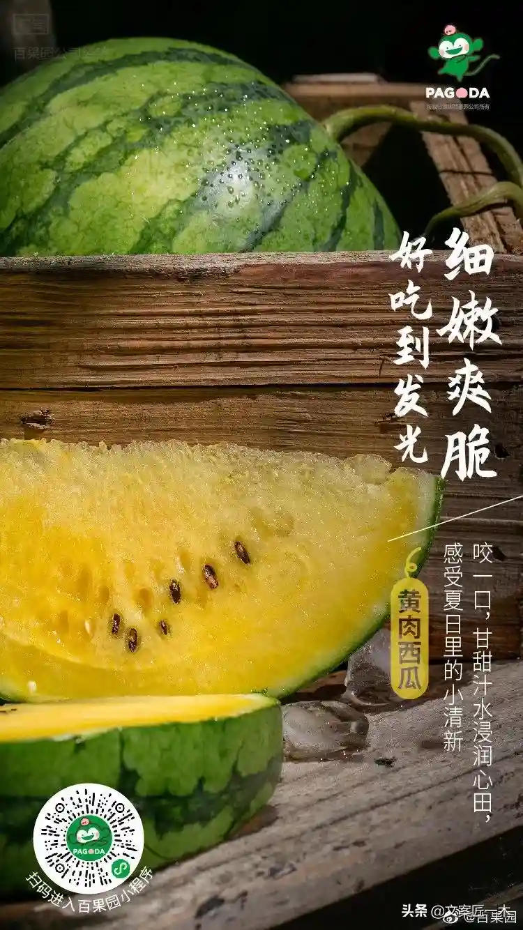 看过百果园的文案之后,会发现设计与文案的相互加持,水果的好吃,除了拍出来鲜嫩诱人,真的可以用文字写出来。