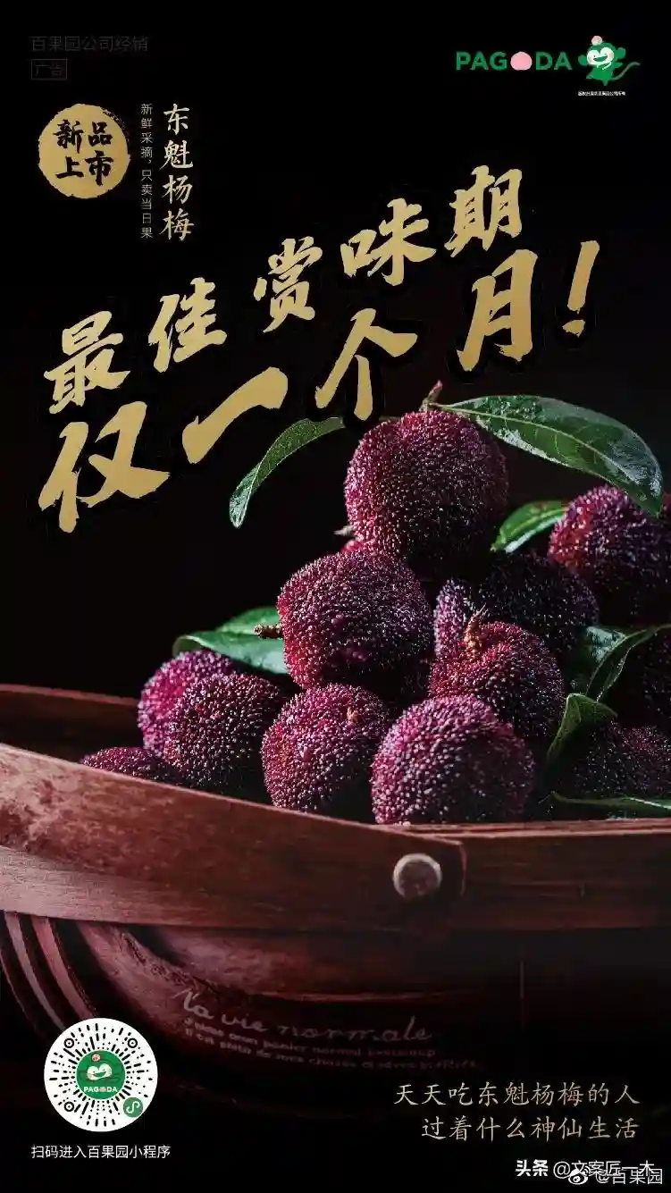 100句文案系列继续分享,被你们催更的生鲜文案安排上,来自一个很会写文案的生鲜平台,把卖水果这件事做到极致,对每一种水果的文案也拿捏得很准,既是水果的介绍,又在这样的文案加入勾人的点子,触发对吃到这般水果的期待。这个品牌就是百果园,一个在线上卖水果比线下还厉害的品牌。
