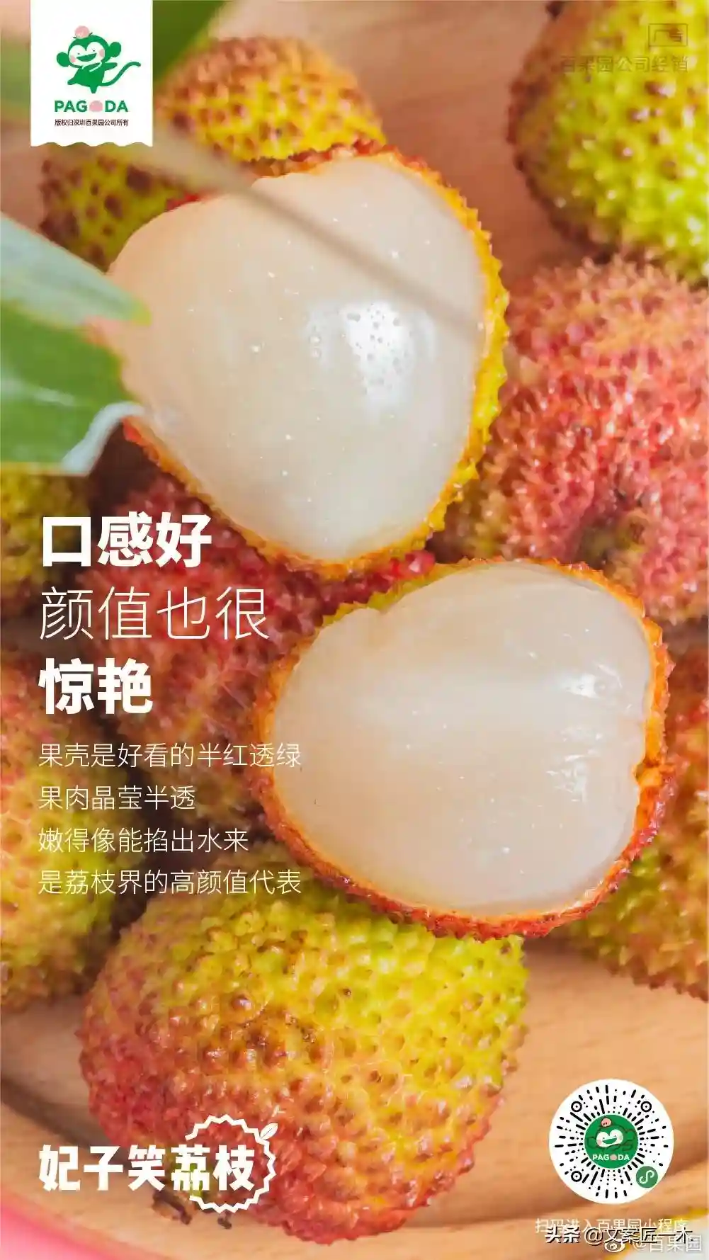 21、果壳是好看得半红透绿,果肉晶莹半透,嫩得像能掐出水来,是荔枝界的高颜值代表