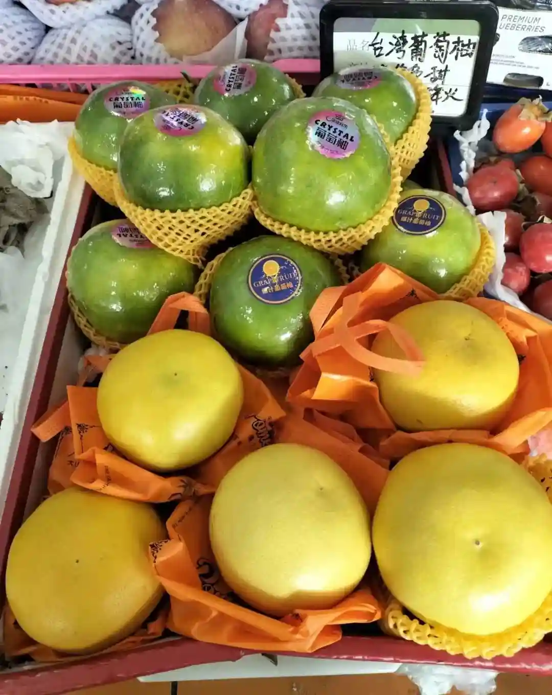 有摊主向记者解释,虽然它的名字叫葡萄柚,但它跟葡萄没有关系。葡萄柚经过中国台湾的品种改良,在酸甜平衡度、口感等方面都有很大改善,果皮薄如橘皮,轻轻松松就能剥开,吃起来也是清甜多汁,不易上火。不过,因其价格比普通柚子略高,买的人较少。