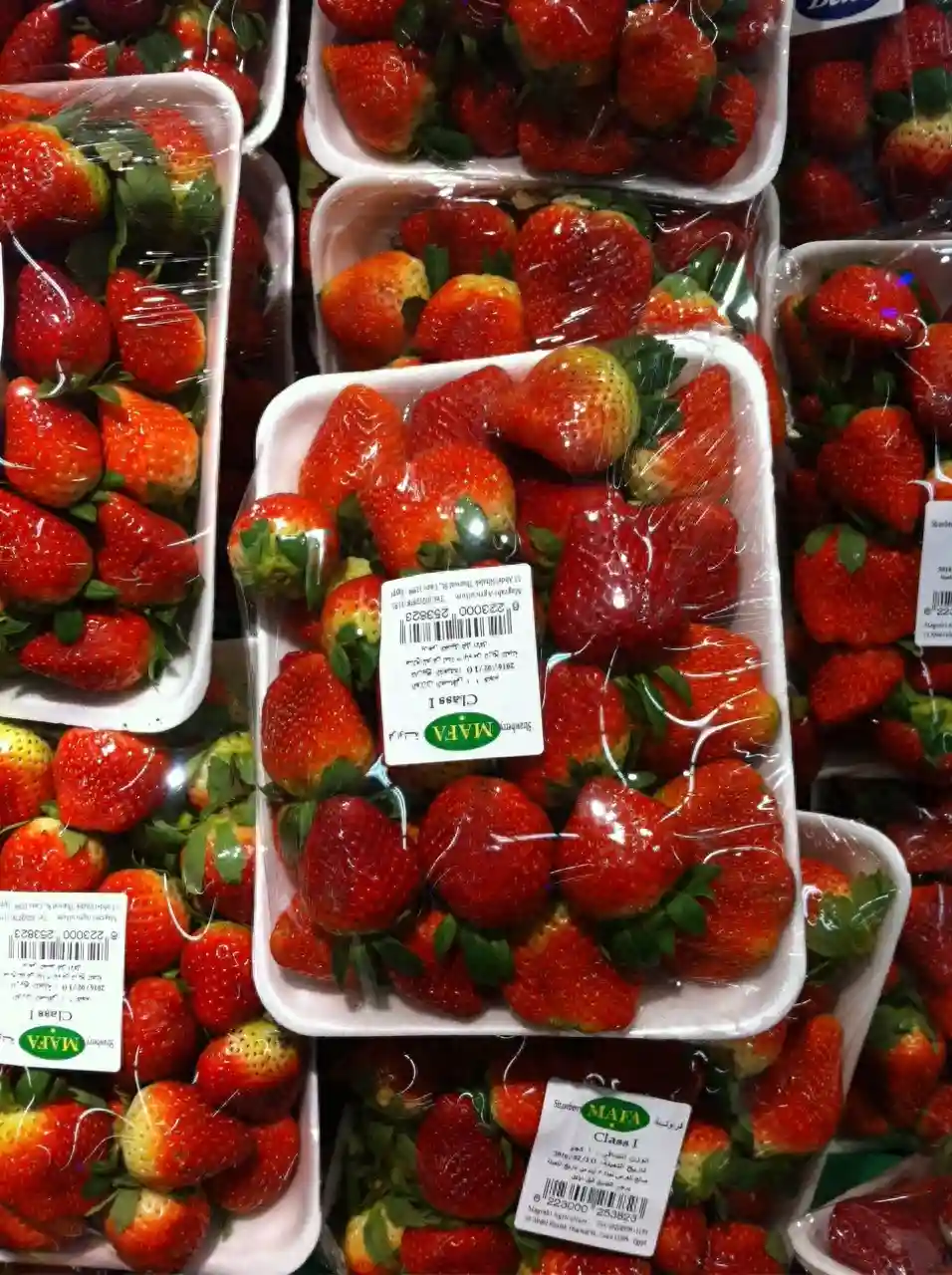 不仅是橙子,草莓也便宜的离谱。这么大个的草莓,一盒两斤多,只要12埃镑。