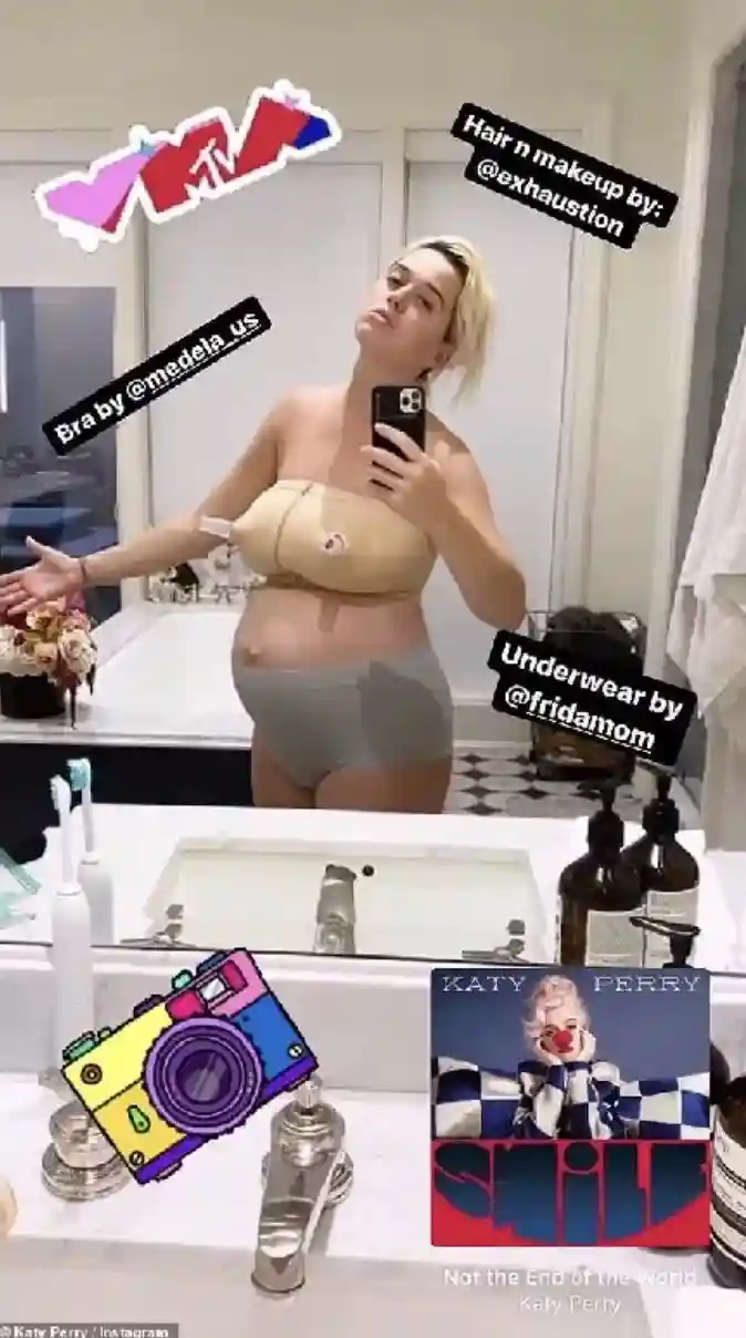 上身穿着使用电动吸奶器时需要佩戴的哺乳内衣,下身随意地穿着高腰孕妇裤,随意绑在一起的头发+满脸倦容,果姐还调侃发型和妆发来自“精疲力竭”。