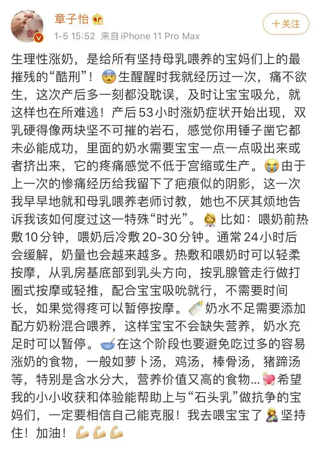 章子怡、Ella都曾在社交平台上用文字分享过初为人母所经历的生理痛苦,告诉所有的新手妈妈:你们都不孤单。