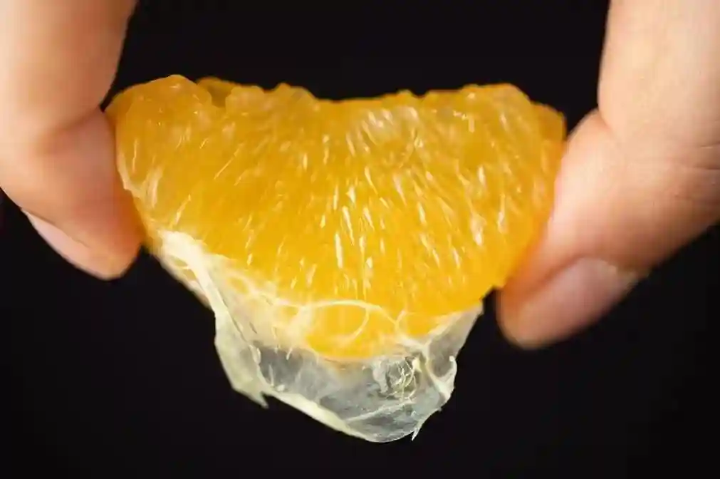 象山红美人柑橘果肉鲜嫩且无核,汁水充盈,轻轻一捏,几乎可以爆浆,号称橘中“爱马仕”。它的果皮很薄,仅1-2mm的厚度,易剥皮,皮薄肉厚,名副其实的“薄如蝉翼”。