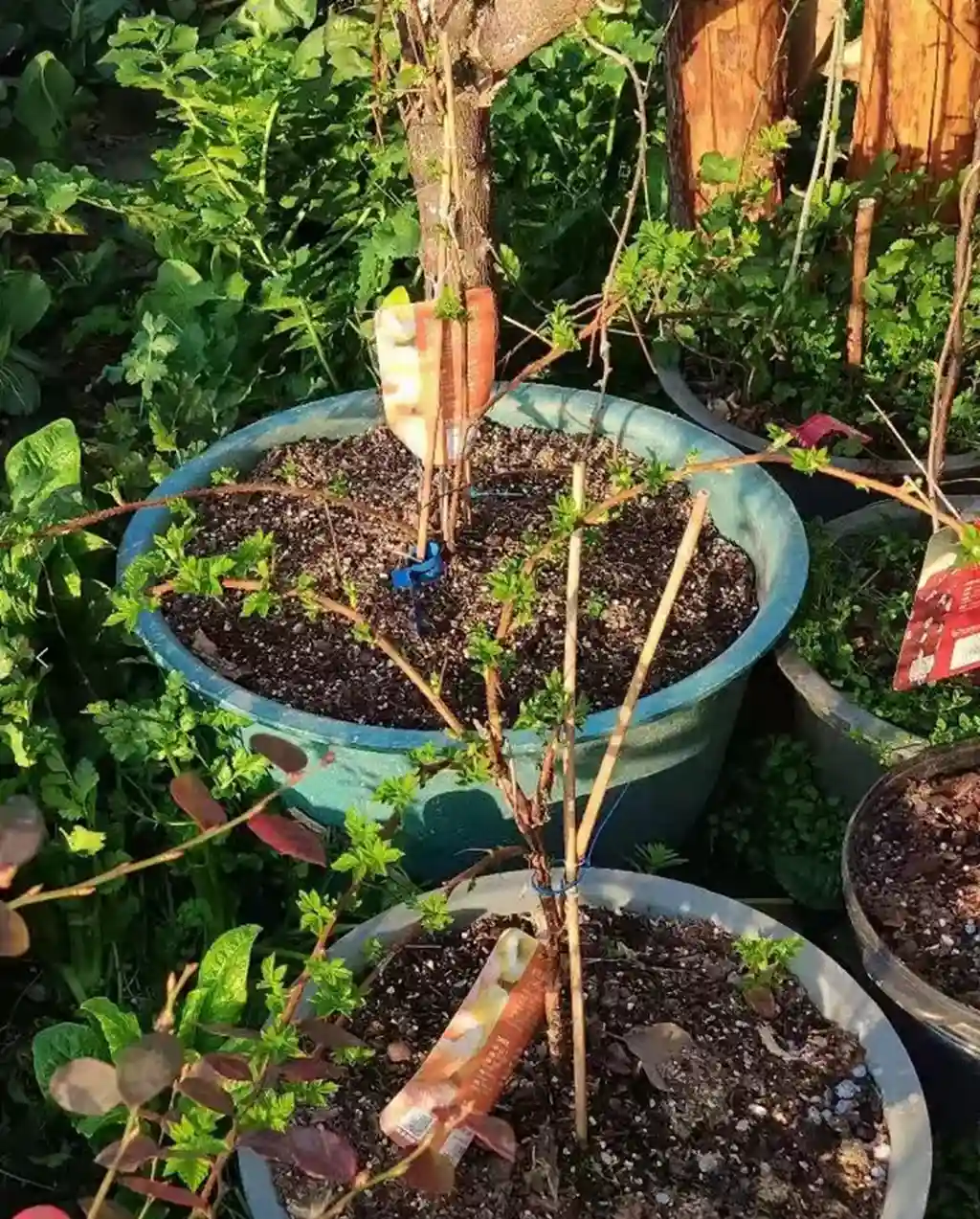 树莓长势非常的强,生长速度非常的快,每年春天的时候会冒很多的基生枝。3年左右便是一大片了,在适当的时机,一定记得换大大大大的盆。要高产,吃不完的果子,什么65CM控根、20加仑的盆都是阔以的。