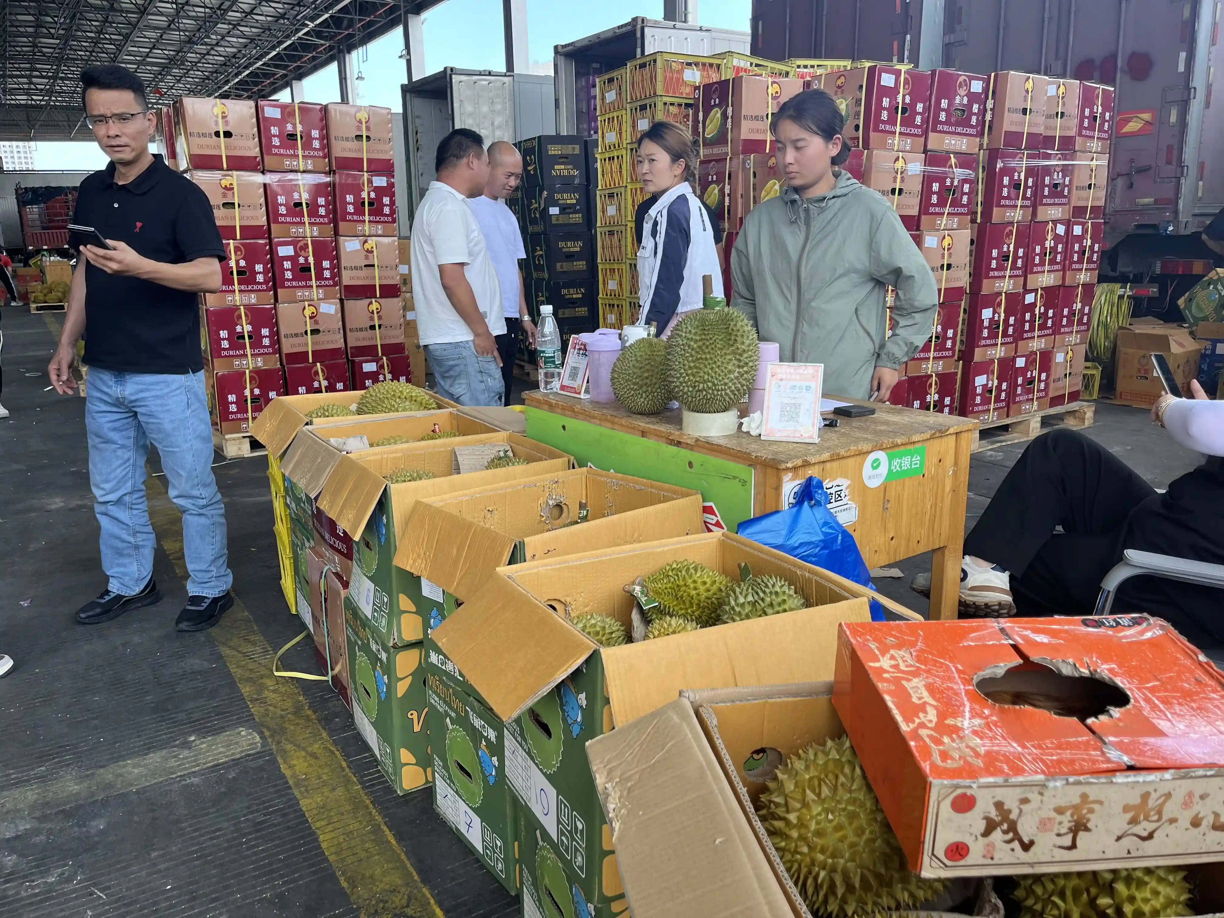 5月28日,温州水果批发市场车板交易区的榴莲交易十分火爆。邓帆慧摄