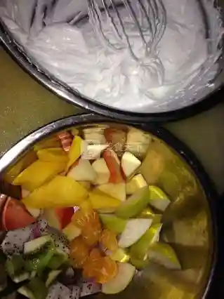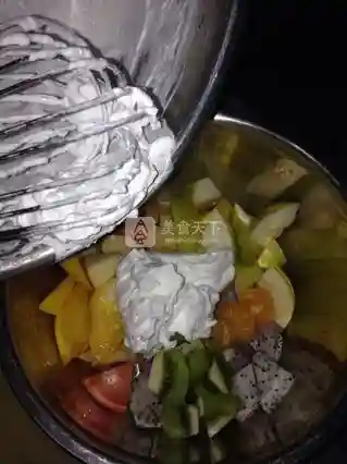 8.打好的奶油放入水果里
