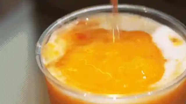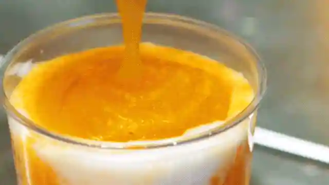 侧面可以看到一颗颗的果粒和西米交融,像一副水彩画,真的是颜值实力双担当,且啖且珍惜!