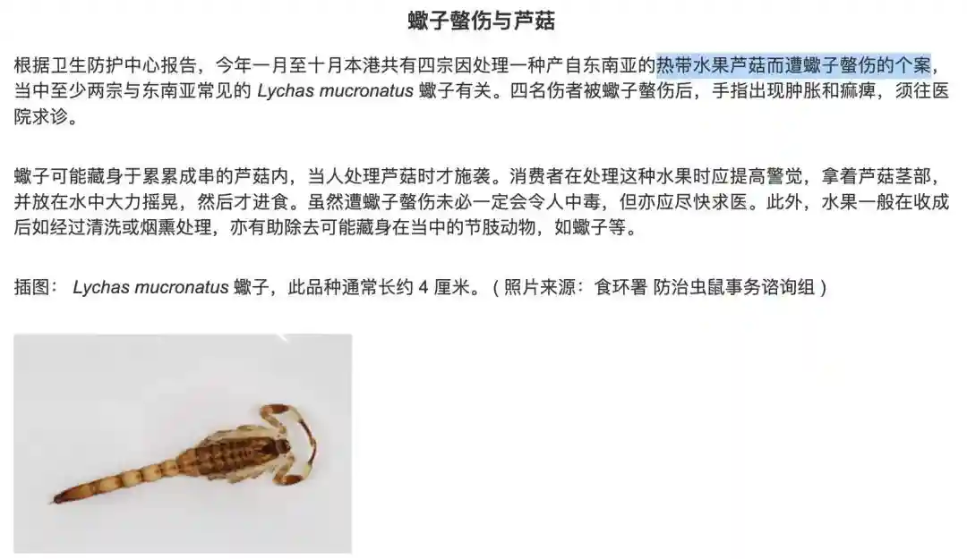 [3]香港特别行政区食品安全中心.蝎子蜇伤与芦菇.