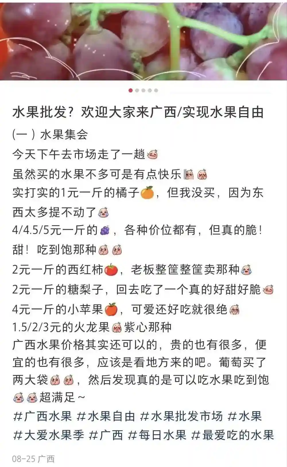 网友分享广西水果价格图源:社交媒体