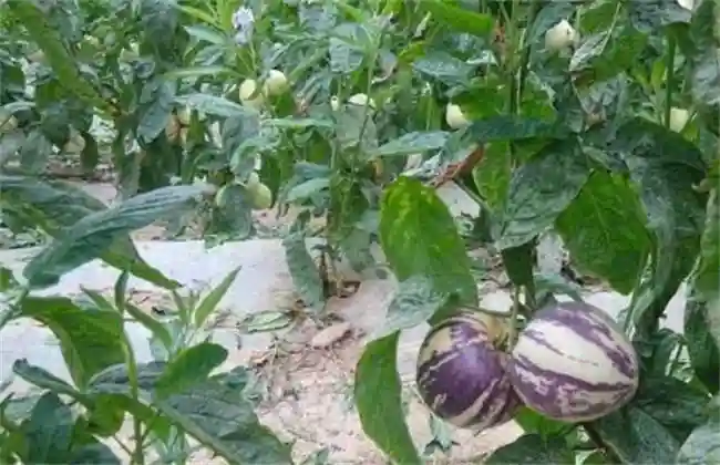 香瓜茄茎秆较软,容易倒伏。因此,要在开花坐果前或茎秆长到40cm左右时,用竹竿、高粱秆、荆条等,搭成较为牢固的交叉形或拱形、长方形或立体长方形的架。用塑料、麻皮等,将香瓜茄的茎秆绑扎在支架上,使茎秆与架材之间绕成"8"字形。在绑扎的过程中要谨慎小心,茎秆要取直,不要将叶、茎和花、果绑扎在一起,松紧要适度,防止损伤茎叶及果实。