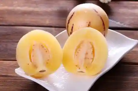 香瓜茄是一种高营养水果,果肉清香多汁,腹内无核,风味独特,具有高蛋白、低脂肪、低糖等特点,富含维生素c和多种微量元素,其中锌元素含量最高。通常所说的人参果是一种原产于中国武威地区的水果,富含蛋白质、维生素与矿物元素。