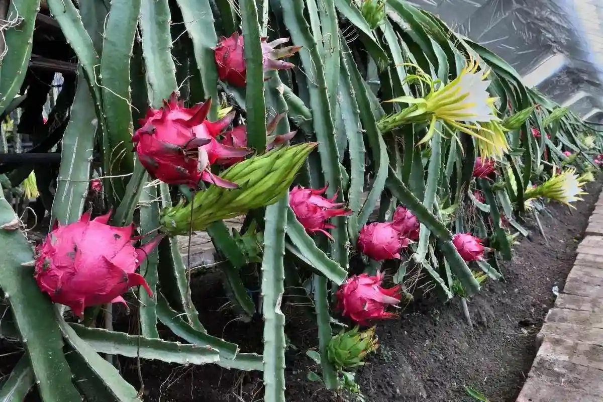 火龙果,为仙人掌科量天尺属植物,最初分布在中美洲至南美洲北部,现在世界各地广泛栽培,2023年,中国火龙果的产量为48万吨。