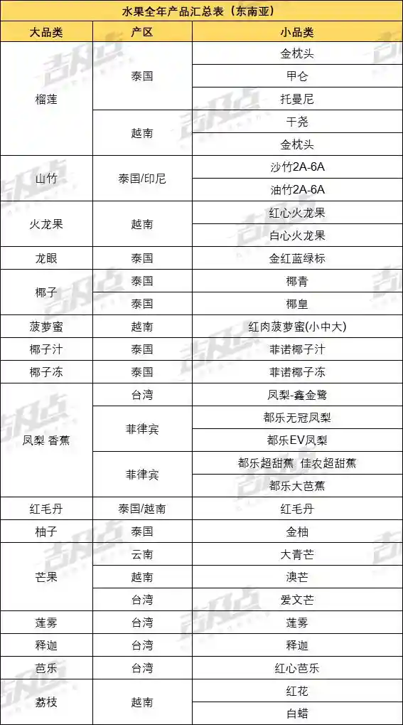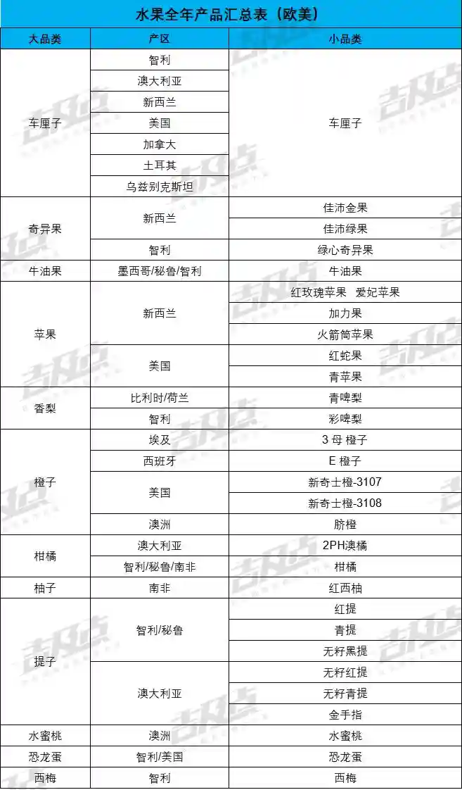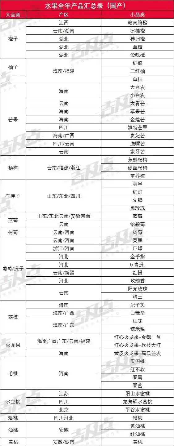 附上水果全年产品汇总表,涵盖国内外各类产品