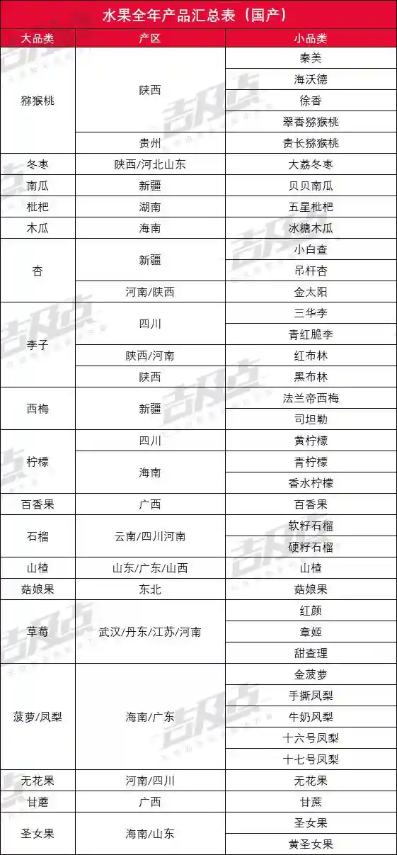 上述表格内容涵盖绝大多数我们日常所见水果单品,能满足社区团购平台、水果店大部分采购选品参考需求,当然各地行情,经济消费水平不同,还需因地制宜,先对基本概念有个认知,才能做得更好。