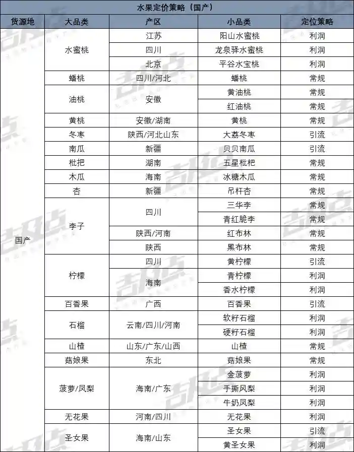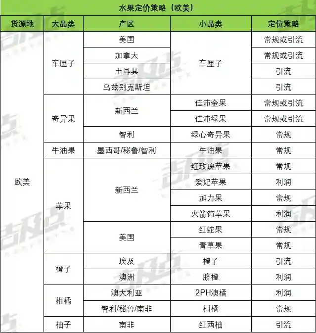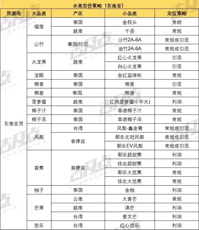 选择好产品后,根据水果的价格可以分高中低档,哪些是引流,哪些是爆款,哪些做利润,可以参考以下定价策略表: