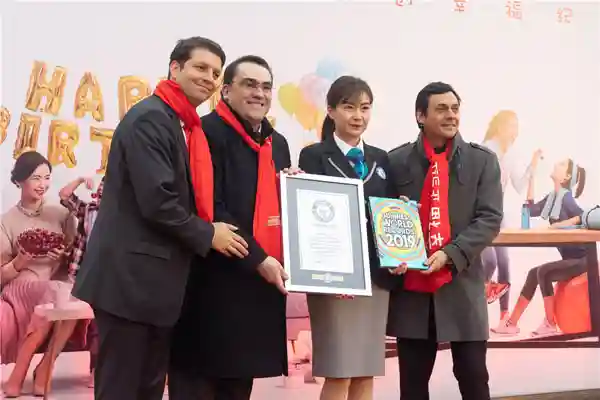活动现场,吉尼斯世界纪录认证官给智利水果出口商协会樱桃委员会颁发了吉尼斯世界纪录“最长的水果队列”荣誉证书。为了赢得世界纪录,智利樱桃委员会使用了24638个深红光润的樱桃,一个接一个依次紧贴码放,随着“樱桃线”的延展、弯曲、回转,勾勒出两颗“手牵手”相连的巨大樱桃图案。