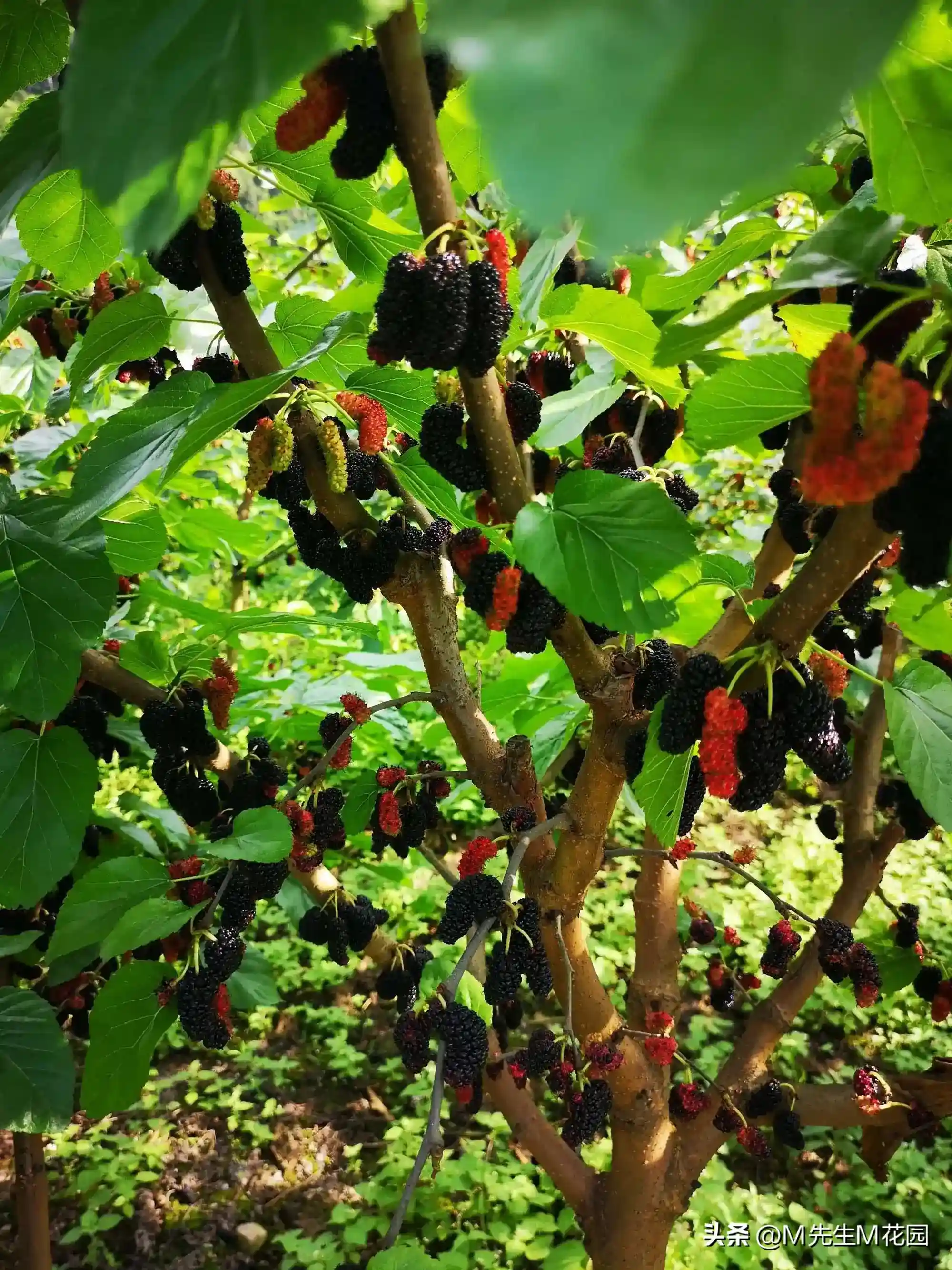 桑葚桑,是我国古老的树种,诗经之中就有桑树的存在,中国是丝绸的故乡,桑树与我国人民的情感很深,从古至今都有人栽培。桑树的优点是生长迅速,结实率高,桑葚是为数不多的黑色水果,营养丰富,桑叶也可以用来养蚕,小朋友们会很喜欢。