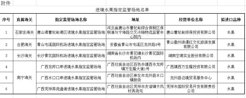 海关总署在官方网站()公布《进境水果指定监管场地名单》,并实施动态管理。