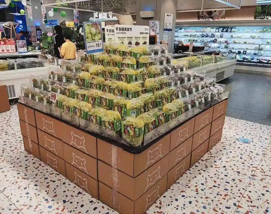 据了解,新疆水果期间,新疆水果品类比平时多了四倍,预计销售会增长了1.5倍。与此同时,盒马也结合“新质生产力”来帮助当地特产更好“出疆”。新疆阿克苏一带引进的红心苹果,因为从里到外都是红色,被盒马的研发采购发掘,成为“一瓶难求”的网红HPP果汁;新疆面粉,被盒马做成了挂面、刀削面、呛面大馒头、葱油花卷等各色面食,丰富众多面食爱好者的味觉。