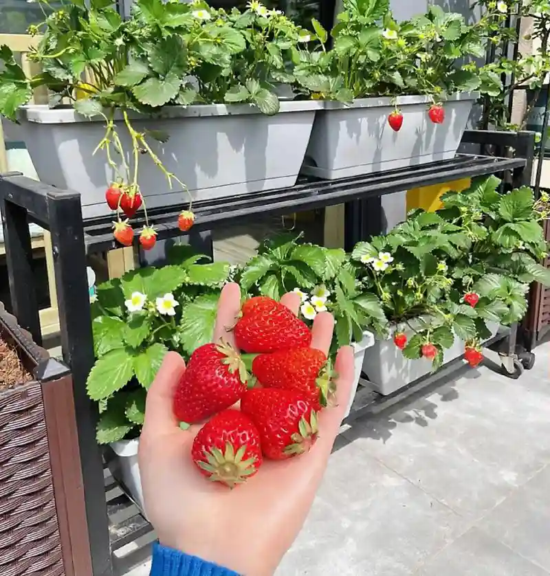 草莓在冬季春季甚至夏初的时候,都可以不停结果,新鲜供应,酸酸甜甜,营养丰富,谁都爱吃啊,在家里的阳台上种植几盆草莓,果子和花朵都能观赏,真的是漂亮又美味啊。