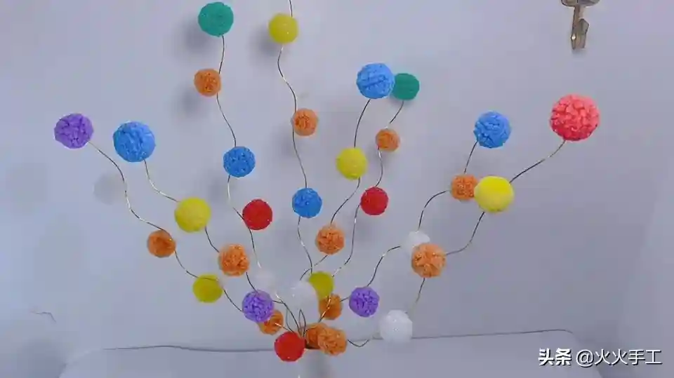 9.没事的时候,我们还可以用水果网剪些小球球,然后把他们镶嵌在金色铁丝上,也是很漂亮的一款装饰品。